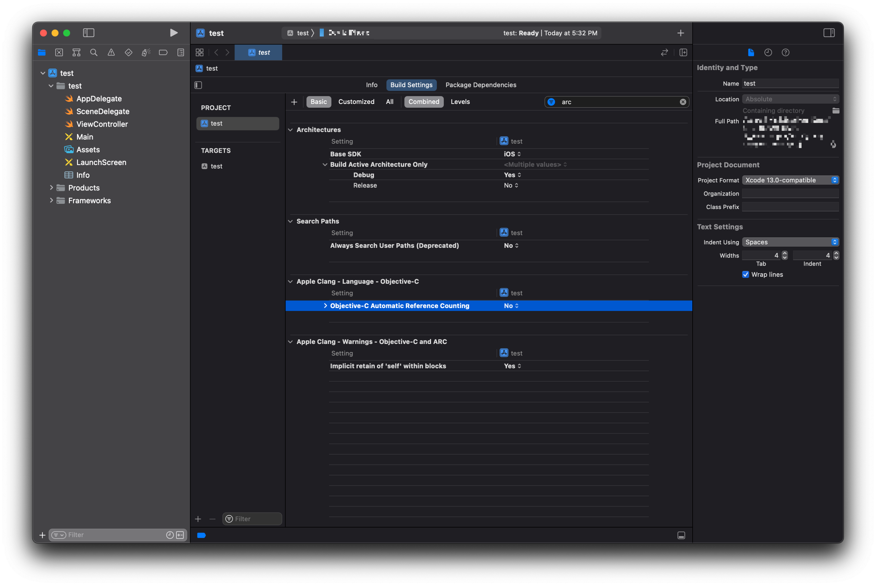 6. 현재 Map용 SDK 는 Automatic Reference Counting(ARC) 을 지원하지 않으므로 ARC 를 NO 로 설정하기